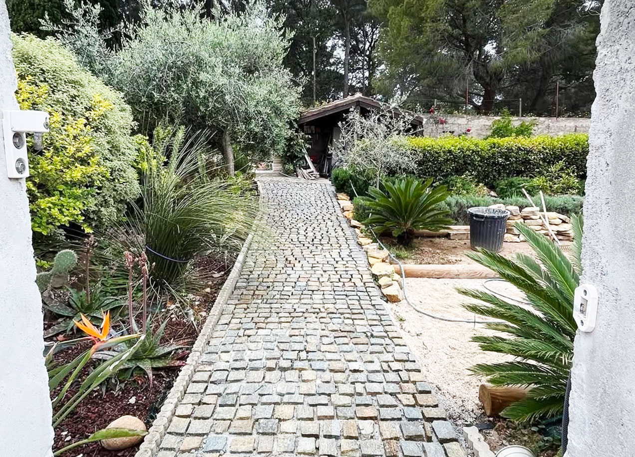 Sardiconception, spécialiste des aménagements extérieurs à Hyères, conçoit et réalise des allées et chemins sur mesure pour structurer vos extérieurs, faciliter la circulation et mettre en valeur votre propriété.
